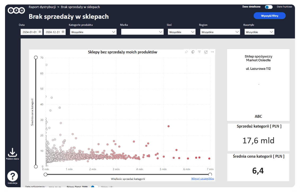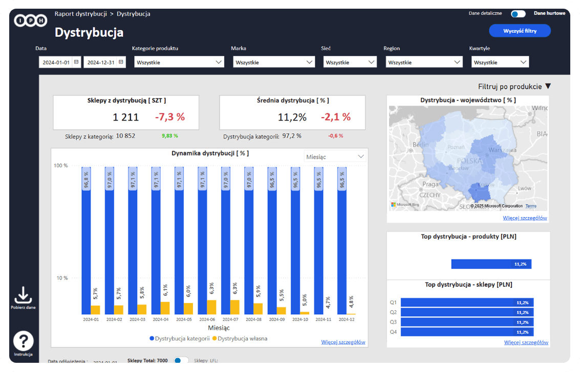 filtrowanie wyników według SKU, regionu, potencjału sklepu czy kanału sprzedaży pozwala Ci precyzyjnie planować działania i zwiększać efektywność dystrybucji.